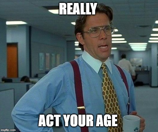 Your Act Your Age Meme picture are accessible in this site. Act Your Age Meme are a topic that is being searched for and appreciated by netizens nowadays. You can Get the Act Your Age Meme here. Save all royalty-free pic.